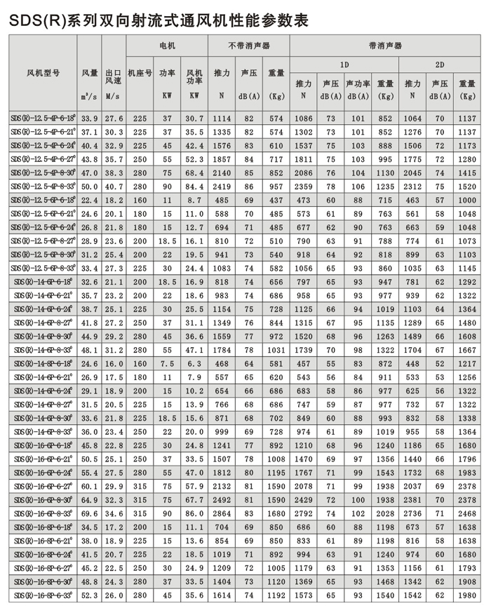 概述 SDS系列射流風機規格自630mm~1600mm,分單向運轉軸流風機和可逆式(雙向)運轉軸流風機二大類,****推力有3500N,對任一負荷和工況均可選擇高效、低噪聲的風機。 SDS系列射流式通風機采用先進的工藝取得良好的質量保證,風機外殼采用美國進口的專用機床旋壓翻邊成形,葉輪段內壁經金加工,既保證機殼的同軸度和強度,又保證葉片徑向間隙,外表經熱浸鍍鋅或其他等效涂裝處理,外形美觀并防腐,性能優良,風機葉片、輪轂采用日本東芝公司全自動數控鏜銑加工中心加工成壓鑄模型腔,分別在高壓鑄造和低壓鑄造機進行鋁合金高(低)壓鑄成形,經公路隧道、鐵路隧道、水利大壩工程等用戶實際使用證明,該風機各項性能指標及耐腐蝕、可靠性、經濟性等技術、質量要求和經濟指標完全能適應各類隧道、地鐵的使用。 產品使用狀況說明 在地鐵、公路隧道、鐵路隧道等基礎工程建設中、其空氣質量標準、安全因素靠風機強制通排風達到要求。就通風系統而言,要長期保持良好的空氣質量,否則對人體有害,如圖說明。 隧道通風系統設計和產品選型依據 交通隧道原則上可分為三類:即地鐵、公路隧道、鐵路隧道。 常規運行及緊急狀態下運行安全性、可靠性的先決條件是安裝確保各系統之間協調并充分發揮作用的環控系統。 A 機械系統:通風、消防’、排污 B 動力系統:供電、輸配電、緊急電力 C 燈光系統:通燈照明、局部照明、熒光指示 D 通信系統:電話、無線電、計算機終端 E 交通系統:燈光、信號、標志、監視 F 控制系統:交通狀況和設備狀況和設備運行狀況的監控 隧道通風系統可以有如下三種基本方式或可采取混合方式。 1 縱向通風系統:這是最基本的通風方式。新風氣流從隧道入口端流向出口端,沿隧道縱向無需安裝通風管道。該通風方式一般選用可逆轉射流風機。將風機安裝在隧道頂部或側面,可二個方向全面通風,以達到雙向通風或控制煙霧; 若隧道較長則必須附加中央送、排風豎井,豎井與大氣相連,組成混合通風方式。 2 全橫向通風系統:沿隧道方向設置送、排風道,新風集中從風亭采集,排風集中從風塔排除,一般將送風道設置在路面以下,排風道設置在車道上部,送風道與排風道每隔一定間距設有送、排風口,在事故工況下沿隧道橫斷面及時排風,由此抽出煙霧。 3 半橫向通風系統:該系統又可區分為送風型半橫向通風方式和排風型半橫向通風方式,一般采用排風型半橫向通風方式,新風從洞口進入,排風相似全橫向通風系統。 4 隧道通風系統應考慮的因素: A工程投資 B 電力容量 C 運行費用 D 空氣質量 E 安全因素 F 緊急狀態下的保證措施 上述因素經濟綜合后確立最優化方案 5、隧道通風系統通風機數量、機號選擇的因素: A CO、NOx及煙霧濃度 B 車流量(車輛密度、時速) C 風力負荷(隧道長*寬*高) D 廢氣排放(車齡、數量) E 發生火警時的應急措施 6、隧道通風系統推力計算理論依據 1 隧道通風系統推力計算依據 入口出口阻力損失 ?隧道表面及設備等摩擦系數 車輛摩擦系數(在最劣勢的條件下計算車輛運動或活塞風效應) 最劣勢條件下洞外風速對出、入口的影響 ?隧道地形、位置(坡度、海拔) 發生 火警時所需的推力(溫度、壓力、時間) 2 隧道降壓(Pa)理論轉換為射流風機所需的推力(N) 射流式通風機的推力是風機進口與出口的動量變化,既風機推力 N=C*質量流量*氣流速度(N) 式中:N=風機靜推力(LSO)N值 C=經驗修正系數 質量流量=空氣密度*體積流量 隧道中使用的射流風機與隧道內氣流之間的相對速度、隧道內摩擦系數和同組平行布置影響有關,所以,射流風機的有效推力為: N=N*(1-V/V)C*C 式中:N=風機有效推力(N) V=隧道內風速(m/s) V=射流速度(m/s) C=隧道內摩擦系數 C=同組平行布置流向損失(該損失如風機機組之間相隔風機直徑100倍,使射流速度不影響順氣流方向的運行條件可以不考慮)。 7、隧道通風系統應用通風機的結構特點 隧道式通風機分單向射流風機(SDS)和雙向射流風機【SDS( R )】二種通風形式 風機本體、消聲器、支架腳:采用鋼板數控自動焊接和機制成型,外表采用表面涂裝處理,以保證風機強度和防腐蝕 風機葉輪:為滿足隧道通風的需要,SDS系列風機可改變葉片數和改變風機葉片角度 消聲器:消聲器長度通常為風機直徑的一倍,當噪聲要求高時,亦可以取風機直徑的二倍,消聲器與風機本體采用螺栓固定。 配套電機:SDS系列射流式通風機配套電機為鼠籠全封閉式,電機設有法蘭安裝盤,電機絕緣等級為H級,防腐等級為IP55,電機引出電纜可接至風機本體機殼上的接線盒,電機帶有潤滑油脂嘴,外接金屬軟管接至風機本體機殼上的潤滑油脂嘴。 風機可逆切換時間:在緊急狀態下,射流風機正反切換時間極為重要,SDS(R)型風機有電子式和機械式二種切換方法,可以在30秒內正反切換到風機額定轉速。 SDS系列射流式通風機試驗檢測 推力試驗:采用推力試驗裝置測得。 高溫消防試驗:由公安部天津消防試驗檢測中心測試。 噪聲測試:風機進出口裝消聲器和不裝消聲器均在空曠的場地上進行測試(大氣風速接近0時),風機聲壓級的測試為沿風機軸線45°角距風機10m處測得。 風機效率:風機運行效率采用測定推力(N)及電機輸入功率(KW)為定義。 該試驗檢測均由上建公司工程技術中心(試驗研究中心)嚴格按國家、行業有關標準進行,并經省級、******權威監督機構試驗檢