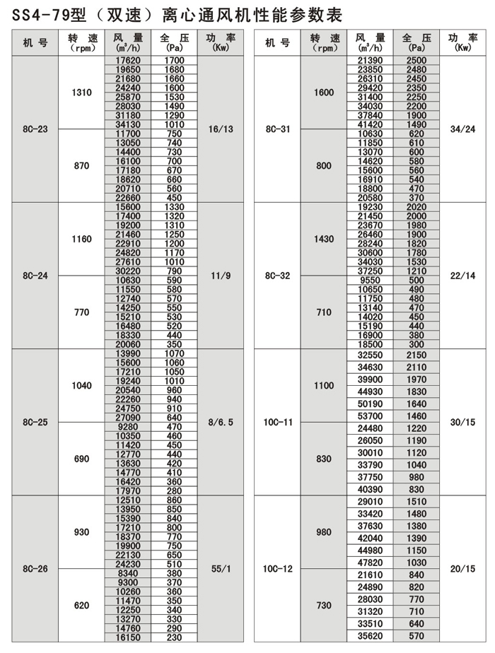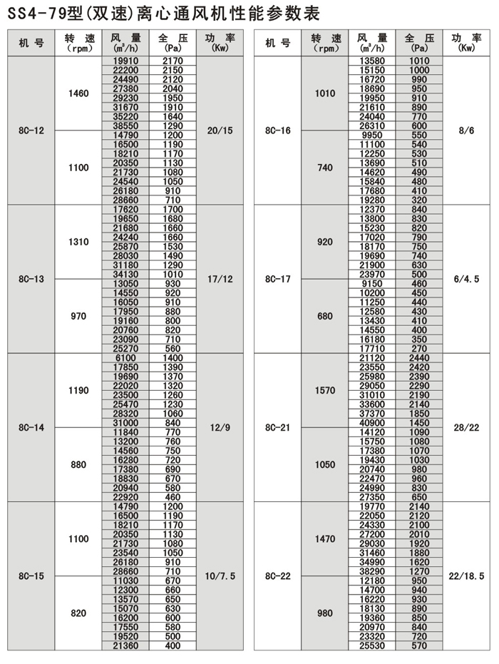 SS4-79系列雙速噪聲離心式通風機,以4-79型離心式配變極多速三相民步電機構成,使風機在保留原型風機優特點的同時,又具有轉速可調,風量及風壓可在大范圍內變化,結構簡單,價格合理的優點,可以一機兩用,節省投資和運行費用。