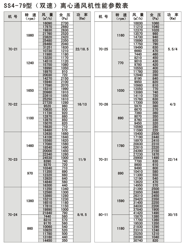 SS4-79系列雙速噪聲離心式通風機,以4-79型離心式配變極多速三相民步電機構成,使風機在保留原型風機優特點的同時,又具有轉速可調,風量及風壓可在大范圍內變化,結構簡單,價格合理的優點,可以一機兩用,節省投資和運行費用。
